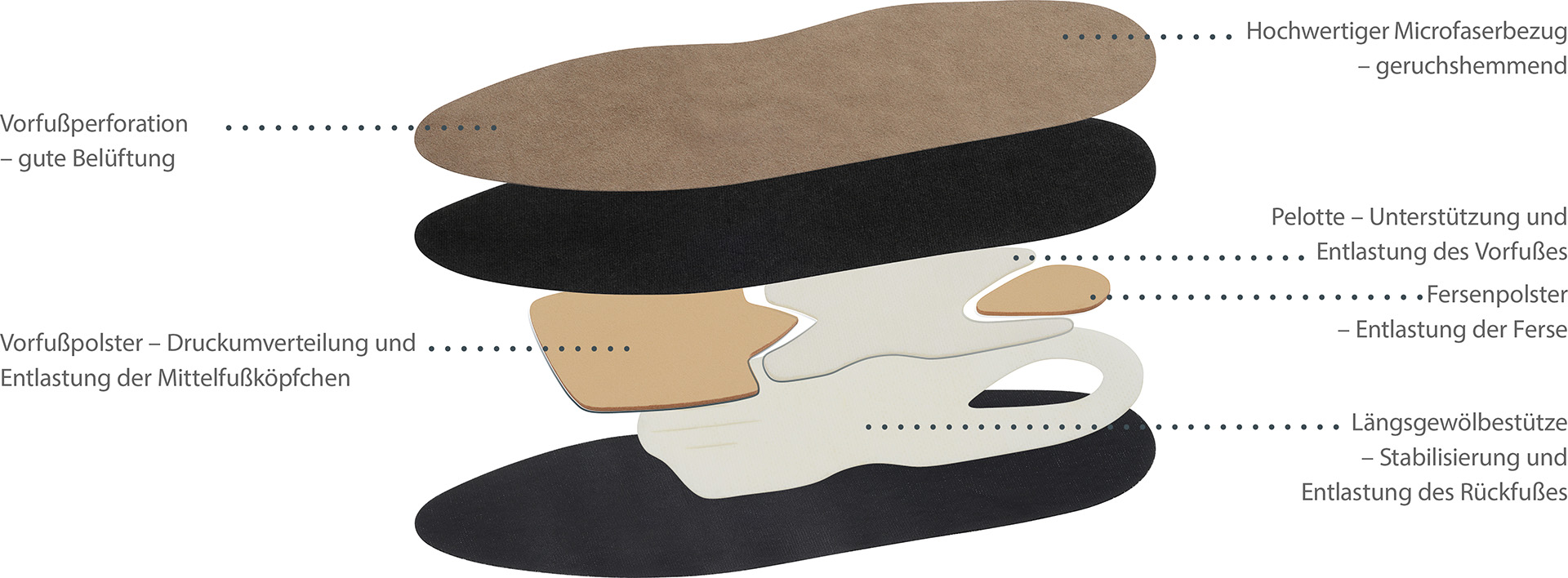 Es handelt sich um hochwertige Kunststoffrohlinge, die in der bewährten Folientechnik hergestellt werden. Mit ihrem Umriss und der sehr geringen Bauhöhe sind sie der aktuellen Schuhmode angepasst. So können Businessschuh und Einlage eine optimal funktionierende Einheit bilden.